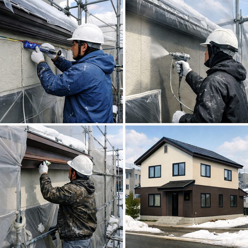 戸建住宅を対象に、外壁の塗り替え工事を実施しました。札幌の寒冷地環境を考慮し、建物の状態に合わせた塗料と施工方法で、美観と耐久性の向上を図っています。